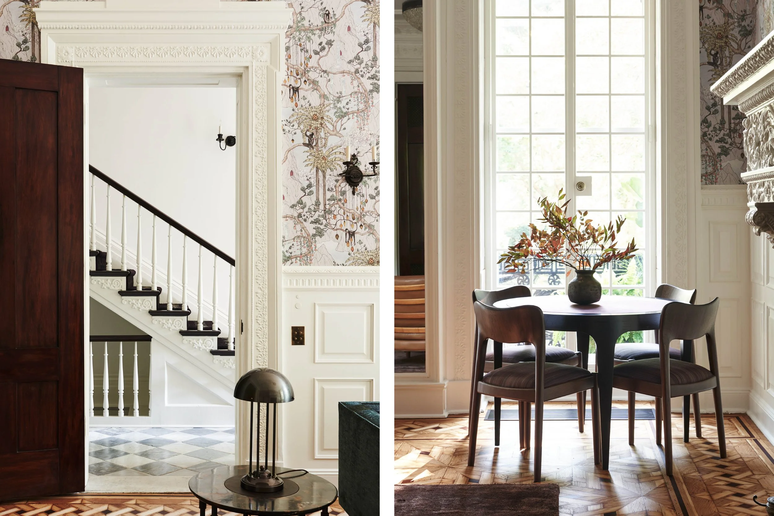 The first floor has been largely restored to its original layout - a series of rooms connected enfilade - allowing for both private entertaining and larger events that spill from room to room. These spaces contain both formal decorative motifs and more tongue-in-cheek elements (such as David Wiseman’s drunken monkey wallpaper) which work to deliver the clients desire for a space that is spatially memorable without being ostentatious.